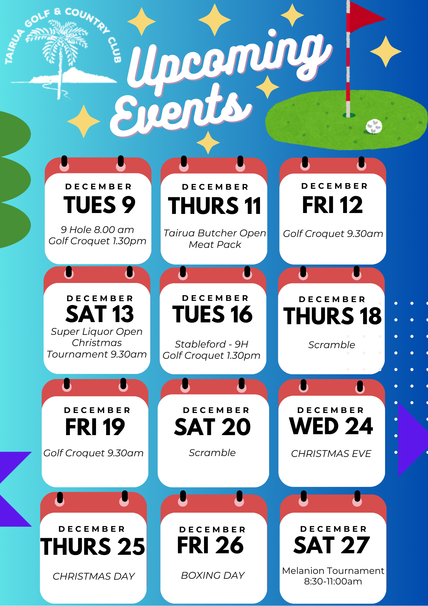 For further information, please contact the office info@tairuagolf.co.nz or 07 864 8416.